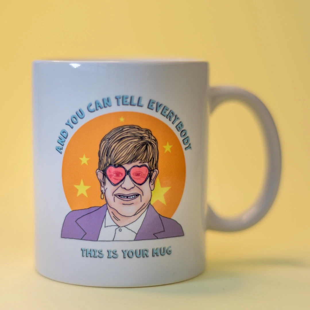 This is the perfect mug for that special someone. A ceramic coffee mug just for them, that they don’t need to share. It’s a great gift for lovers of classic Elton John and hilarious puns.Â