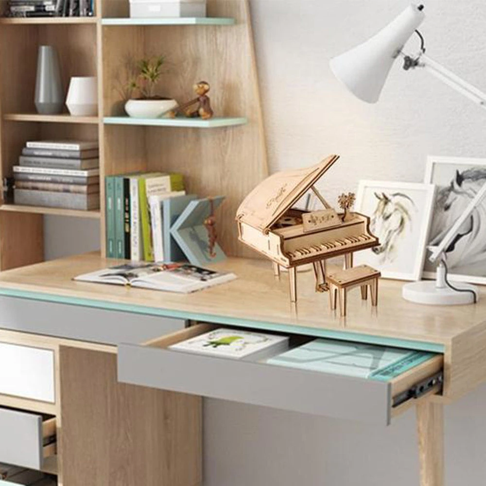 A very small piano for display, that is. This set comes with 74 pre-cut wooden pieces that can be put together to build this impressive miniature grand piano model! You won’t need glue or tools, just a good eye and steady hand.