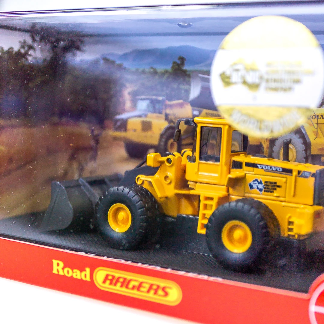 It’s a 1:87 scale model of the Volvo L150C Wheel Loader, an icon of construction workers everywhere. The acrylic case has an impressive Aussie bush backdrop, complete with a kangaroo. It’s an intricately detailed piece, carefully designed to impress collectors.