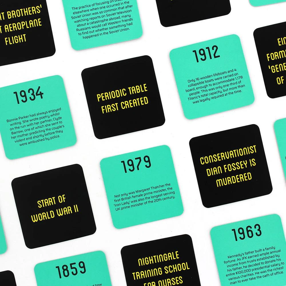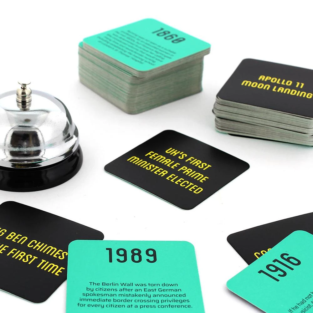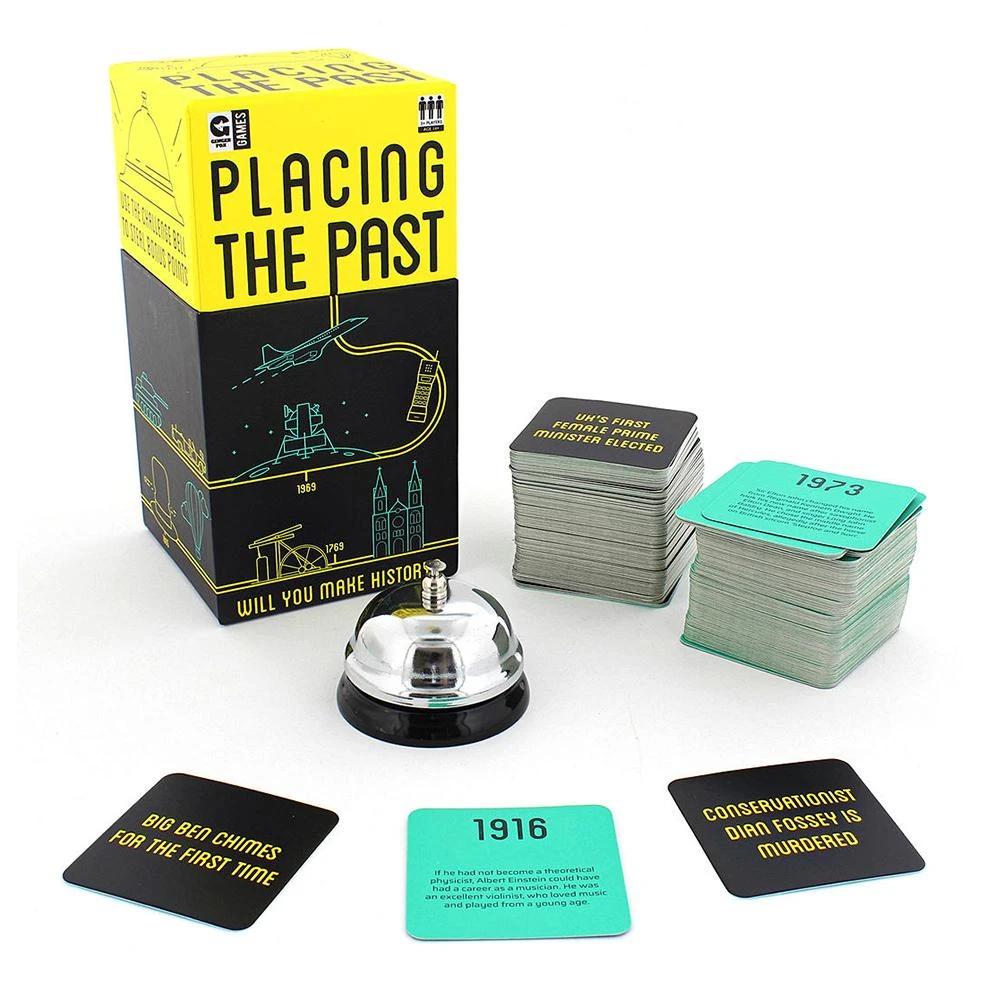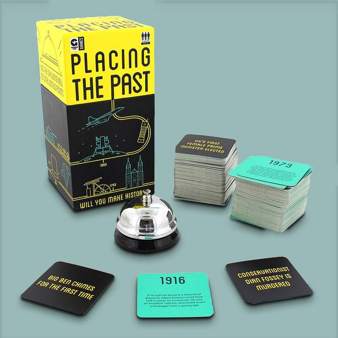 Placing the past is the fast-paced game of time and risk where the objective is to place historical dates in the right order to gain points. The person with the most points at the end of the game, wins. Sounds easy, right?