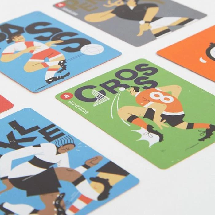 Your team is trying to build their attack by building combinations of PASS cards and DRIBBLE cards, but ALAS! Every time you play a card a TACKLE card flies in from the opposite team! Damn it!