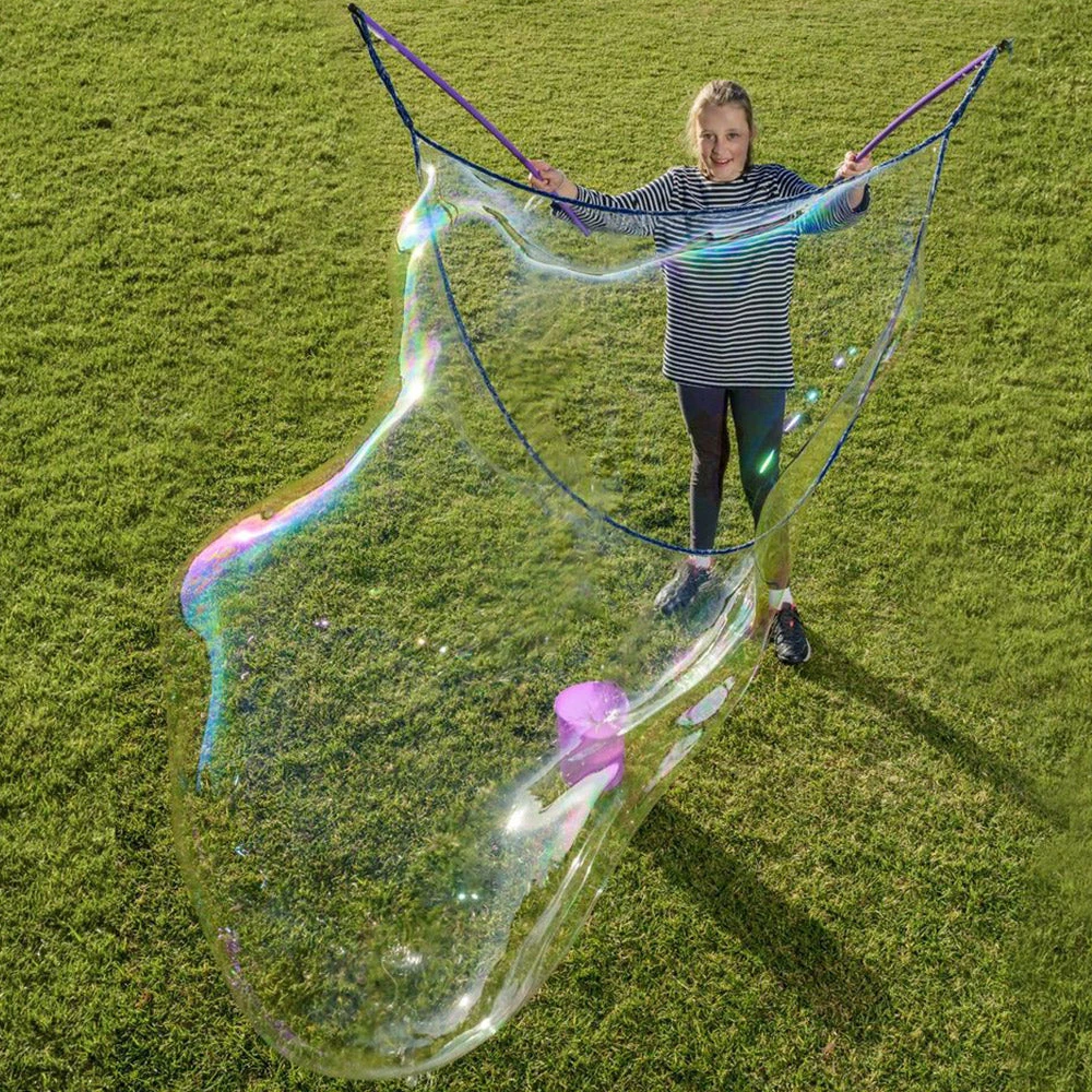 But with this incredible kit, we’re taking the already magical bubble experience to a whole new level. None of these little baby bubbles, we’re looking for something BIGGER.Â
