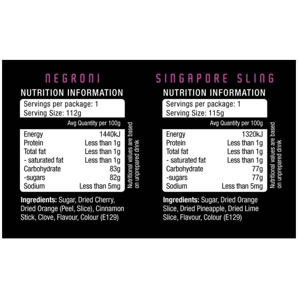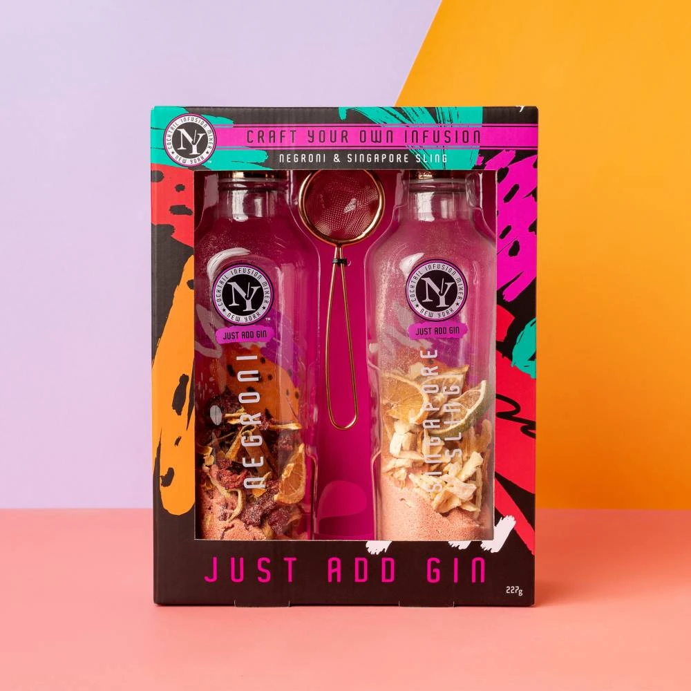 With refreshing flavours like Negroni and Singapore Sling, this twin pack contains everything you need to make your own cocktails – including a strainer. Simply add gin*, let it infuse in the refrigerator for a few hours and ta-dah! Strain it into a glass and enjoy.