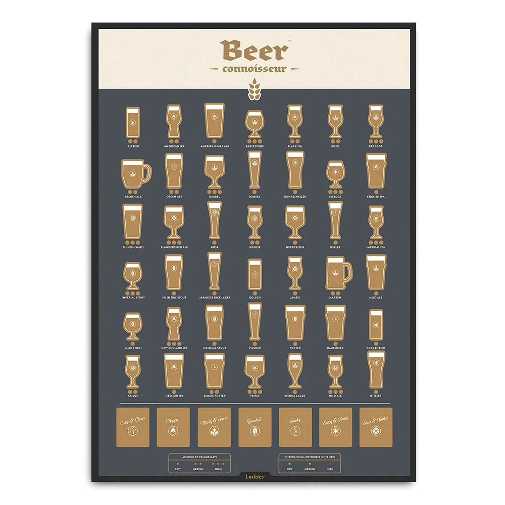 This fun scratch poster has 42 different kinds of beer each coated in thin gold foil that you can scratch away once you taste them. It comes with a guide to help you with flavour profiles and other facts. The bottom of the poster has each flavour profile with a symbol matching each of the beers, and they’re all ranked for bitterness too.Â