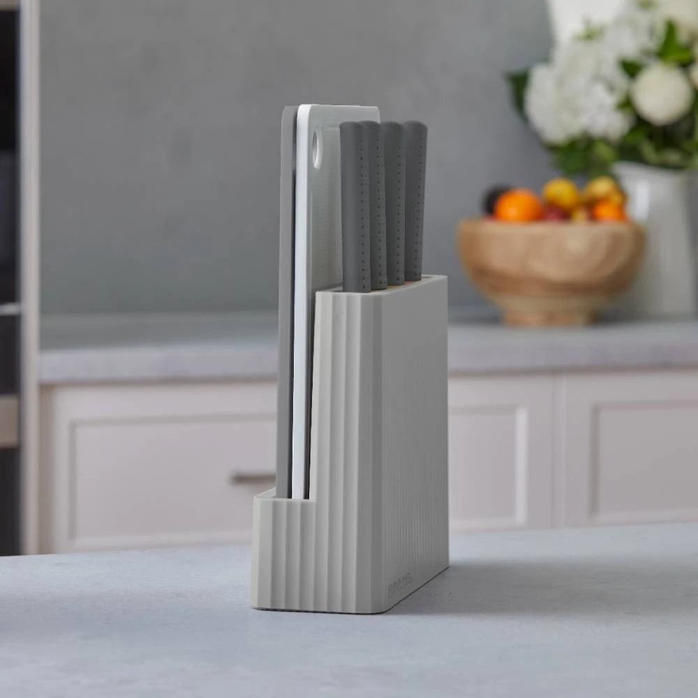 Step up your kitchen collection with this 7-piece Cut & Store Chopping Boards with Knives Set!