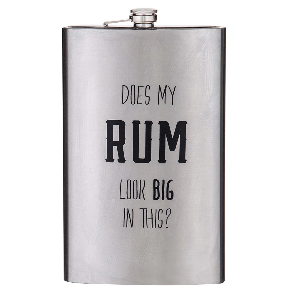 This huge drink flask holds a whopping great 1.6 litres. Forget a party, this will keep you going for a whole camping trip! It’s made of stainless steel and has a cheeky “Does my RUM look big in this?” message printed on the front.Â