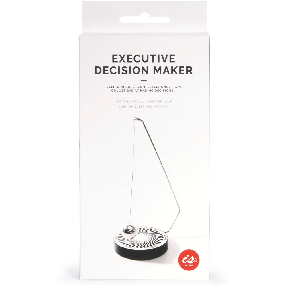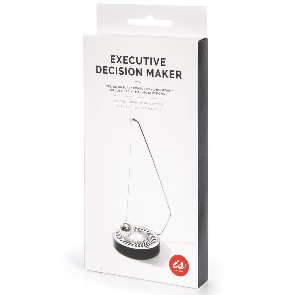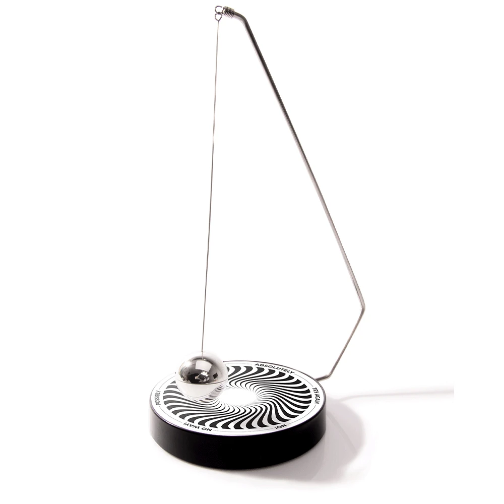 Now you can let it all go with the Executive Decision Maker! Just gently swing the pendulum and it will settle on one of the six answers to decide for you over and over again using simple magnet tech.
