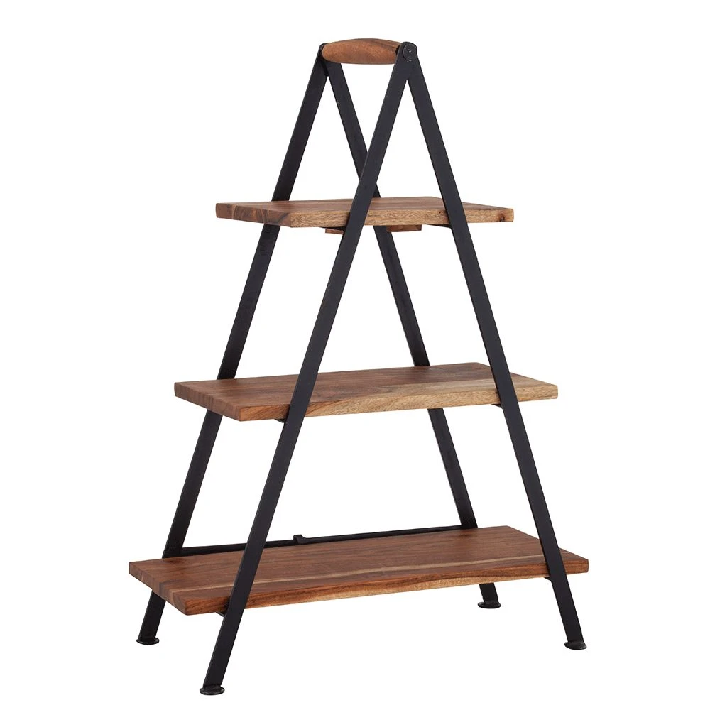 You could even use it as a shelf to display small trinkets or photos in the lounge. The rustic style acacia wood boards are held by a black powder coated metal frame, with a wooden handle at the top so you can carry it from the kitchen. Â