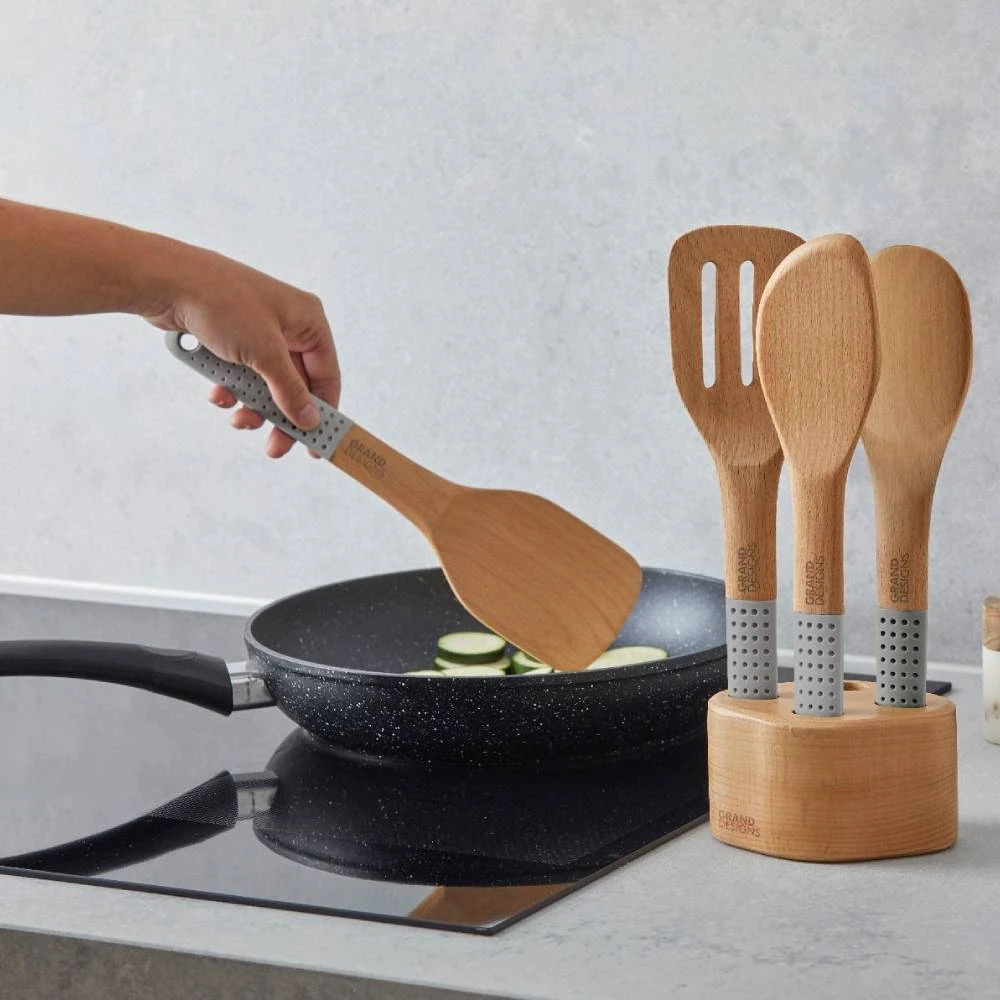 Every tool is expertly crafted from durable beechwood and features a stylish silicone handle. They’re also safe for use on non-stick pans.