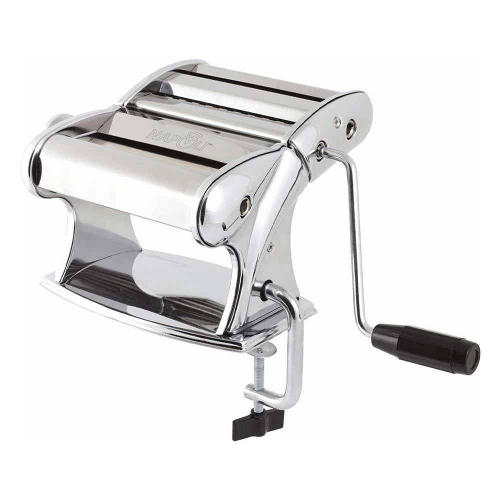 This stainless steel machine comes with rolling and cutting attachments, and can cut 140mm lasagne sheets, 6mm fettucine noodles and 1.5mm linguine. It comes with a bench clamp so you can really get into it without worrying about losing your grip.Â