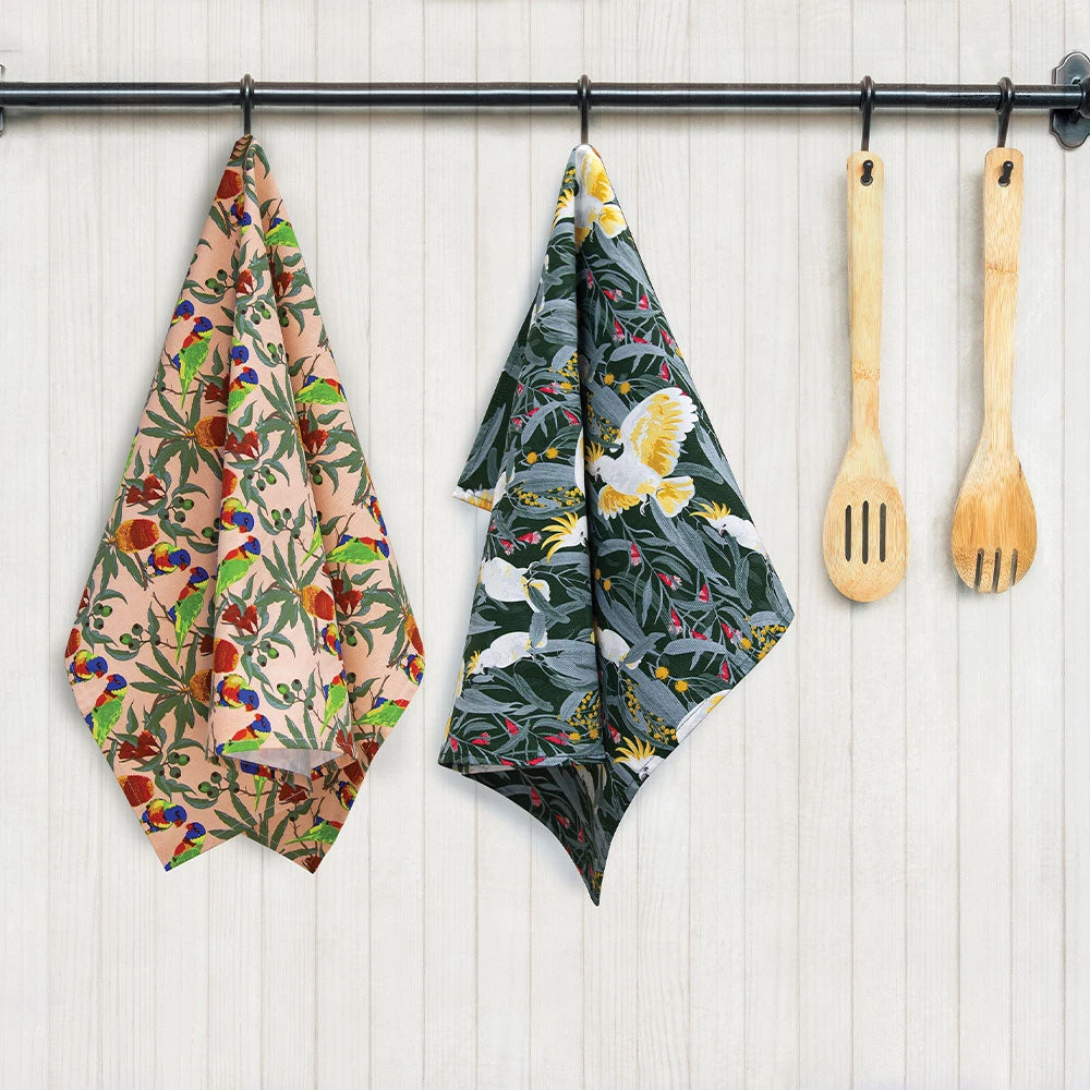 Brighten up the kitchen with these colourful Australian bird themed tea towels!Â