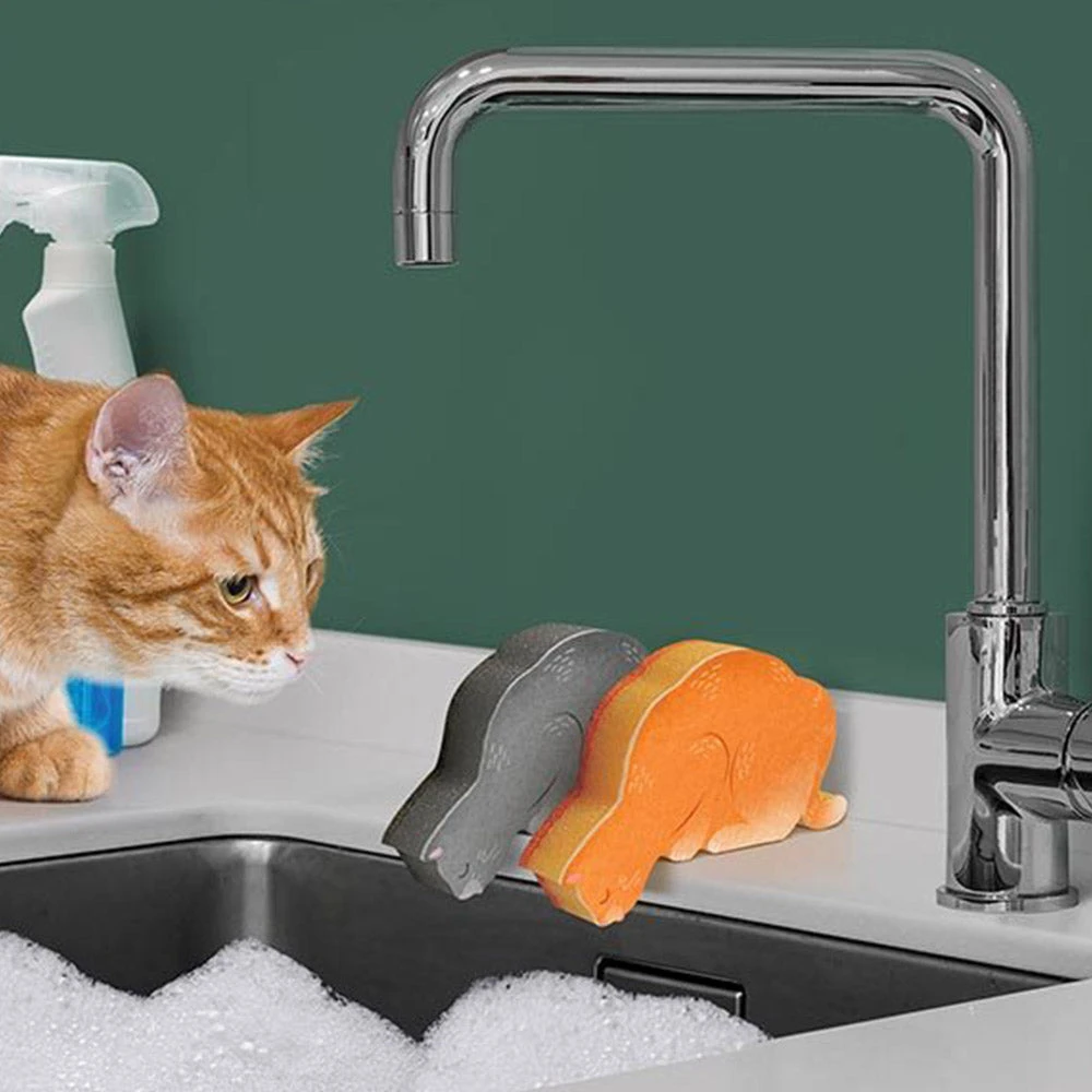 These novelty dish sponges have one side that is perfect for scouring the real tricky messes, while the other side has a stiff felt great for gentler cleaning. There’s an adorable cat printed on the felt! It comes in a pack of two with a ginger friend and a sweet grey kitty.Â