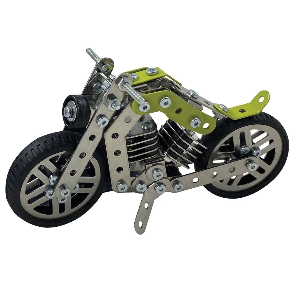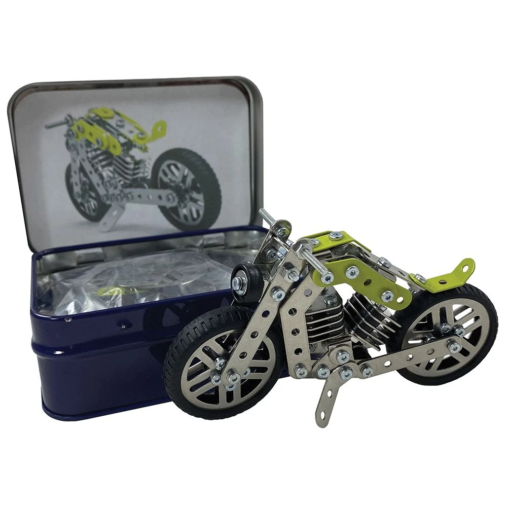 It comes with all the parts to build this miniature motorbike model, including special tools to piece it all together. The parts come packaged with the instructions in a sweet little tin ready for gifting!