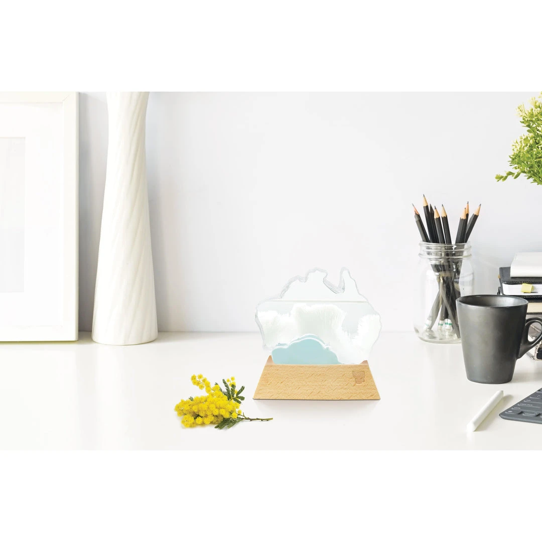 Shaped like the Australian map, the glass sits beautifully on top of a gorgeous beechwood base that will complement any kind of decor. This Aussie-shaped take on a historic weather reading device not only looks amazing on your desk, but it really works too!