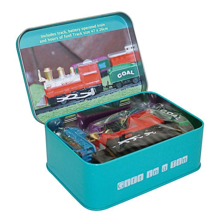 We choo-choo-choose this Train Set in A Tin. This amazing little train Set in a Tin includes a track and battery operated train for hours of fun! Build and play with friends and family and watch this old style train make its way around your very own designed track.