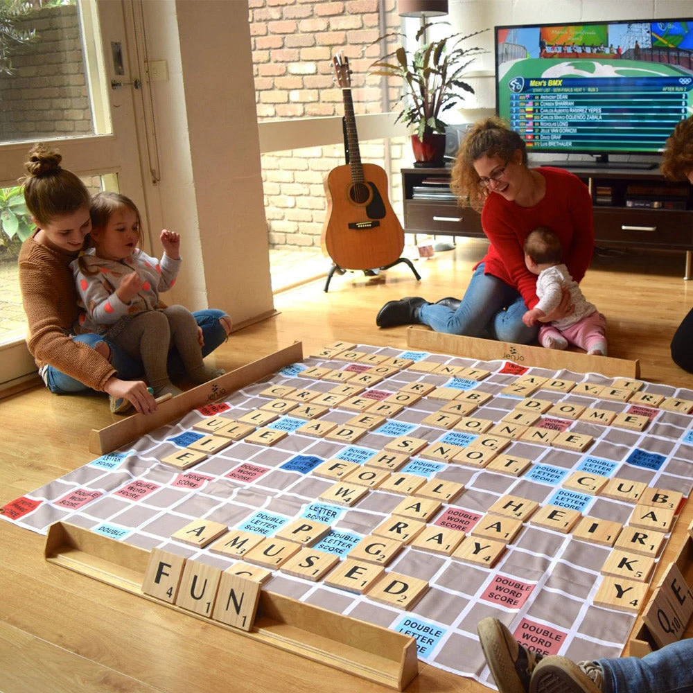 The 1.5 metre playing mat is sure to be the centre of attention, with four 88cm letter racks. It comes with a handy carry bag so you can easily cart to to the BBQ at your mates place.Â