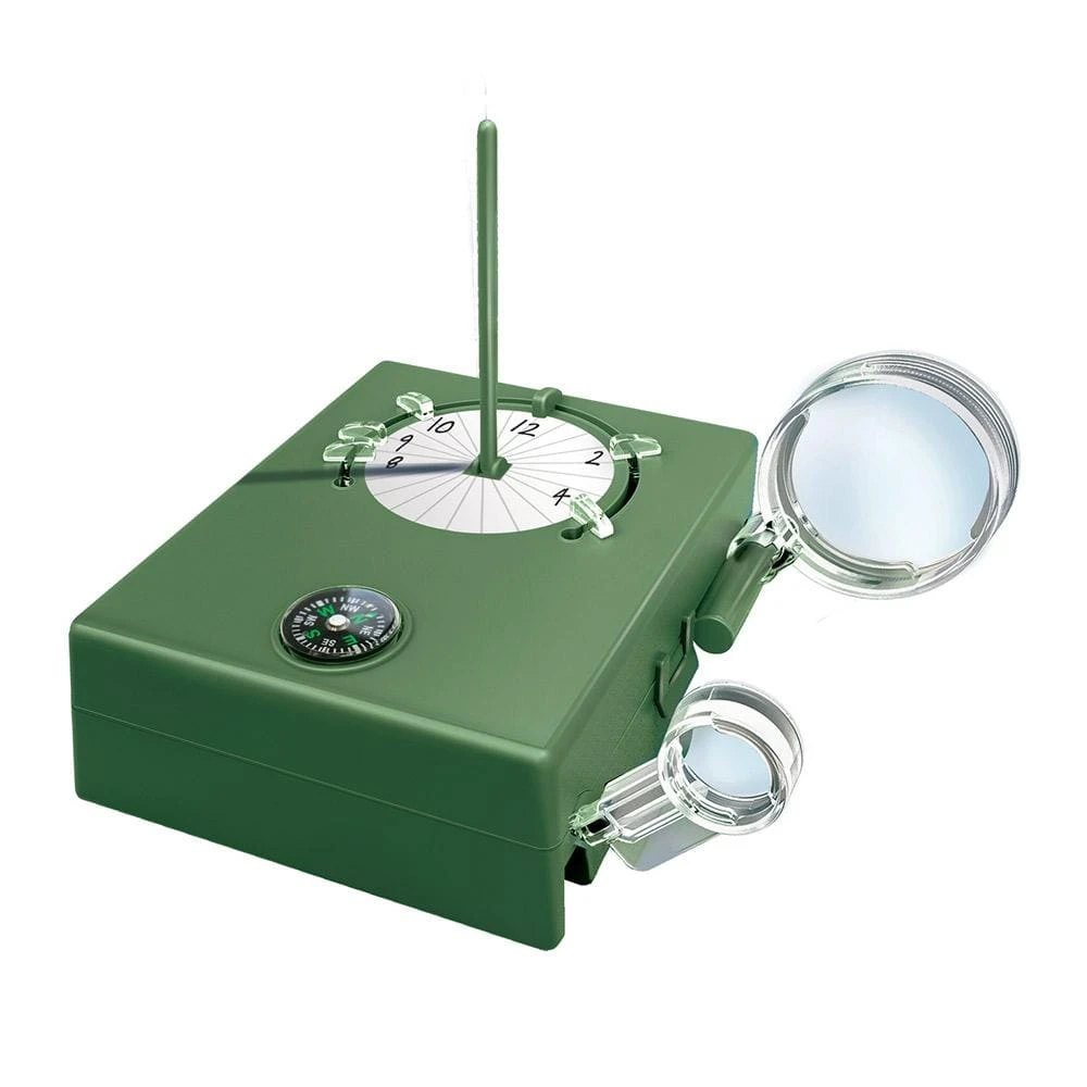 - Inclusions: telescope, sundial, torch with morse code machine, water purifier, compass, mirror, whistle and magnifier, case