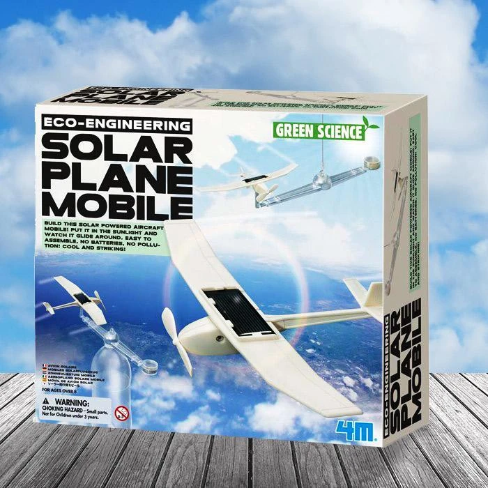 Finally, an aircraft that produces zero carbon emissions and is powered completely by solar energy. You can hang it from the ceiling and watch it glide in circles, or spin it on top of a water bottle. But before you watch it glide, you must work as an aircraft mechanic and assemble this amazing kit. Are you ready to be an eco-engineer?