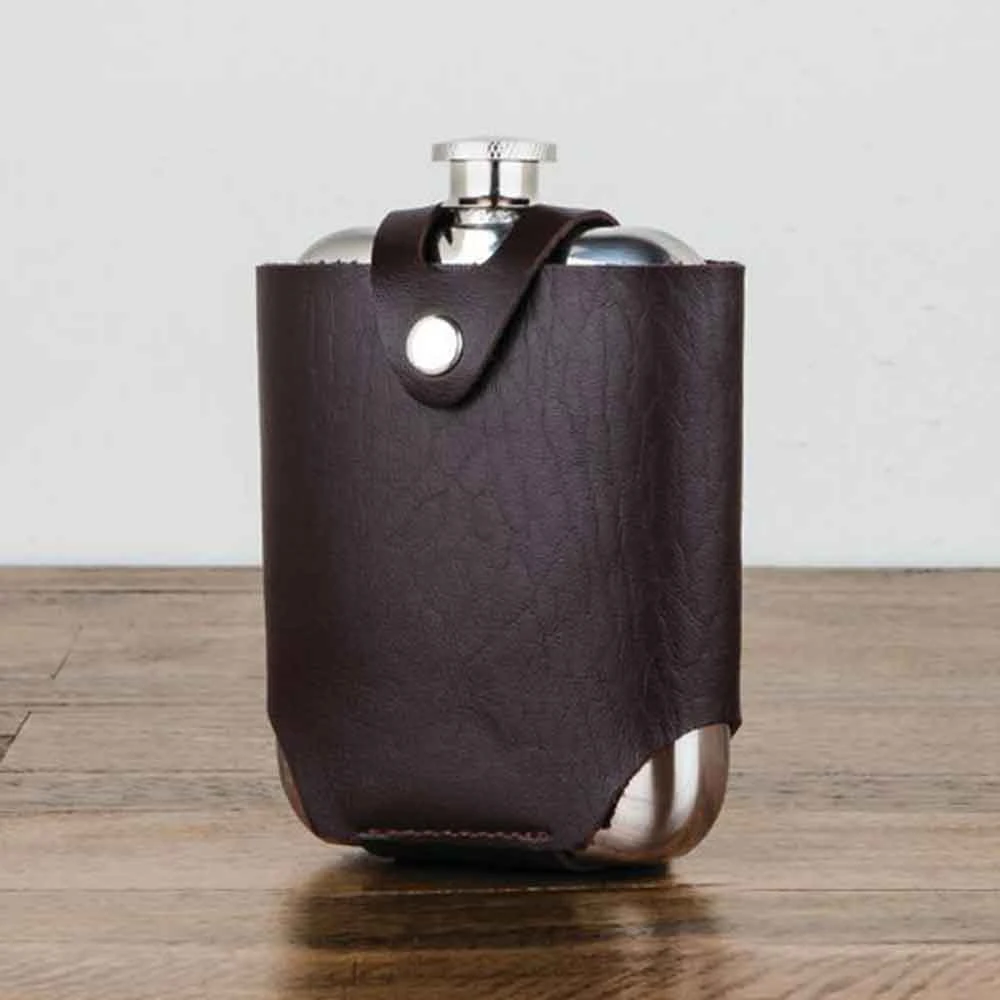 This stainless steel flask has rounded edges and fits 150ml of your favourite liquor to bring a little warmth to any day. It comes with a dark chocolate brown faux leather pouch to bring a sense of sophistication and class.Â