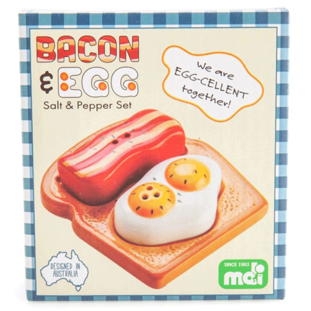 The little strip of delicious crispy bacon is one shaker, and the tasty double yolk egg is another! They sit mouth-wateringly in their little toast tray for an adorably kitsch decor statement.Â