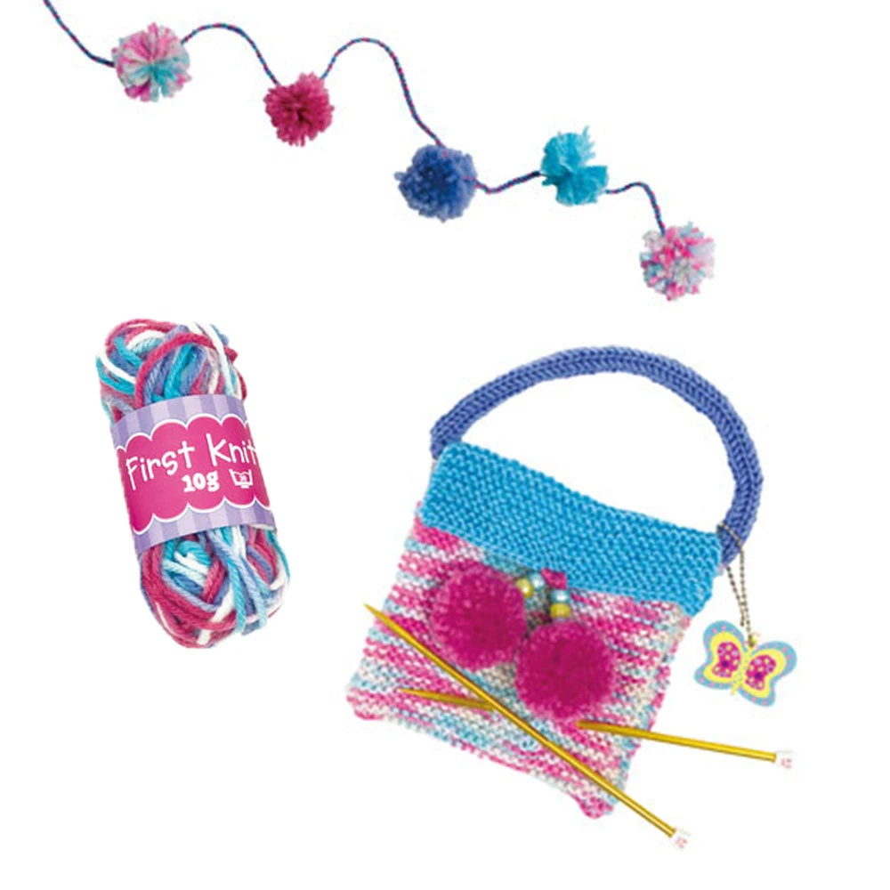 They’ll get to make an awesome knitted bag, purse and a funky pompom scarf. It includes 8 balls of wool in beautiful shades of pink and blue and some keyrings and beads to dress up your hard work.Â