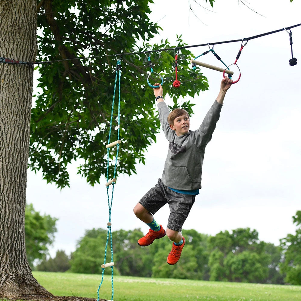 Kids can unleash their inner monkey with monkey bars, monkey fists, gym rings and traverse ring included to turn this into an ultimate ninja style course. or use the strap alone to test your slackline skills.