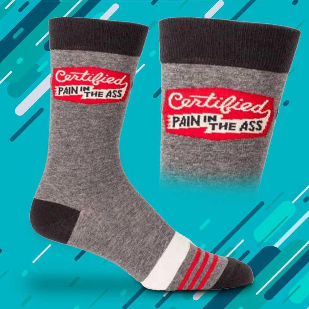 If you know someone who has the skills and experience to be certified in ass-pain-ery, you’ll want to give them these socks. Comfortable, fashionable, straight-to-the-point. They’re a warning to anyone who dares to approach that they’ll be dealing with a consummate professional pain in the ass.Â