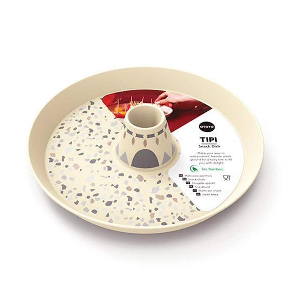 There’s a tee-pee in the middle to hold your toothpicks so guests can select their snacks without worrying about germs. The base has a stylish terrazzo print in natural colours to suit every occasion.Â