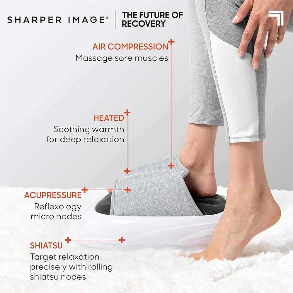 This foot massager is on of the latest ingenious & innovative offerings from Sharper Image. Slip your feet and and experience a multitude of soothing sensations. First there’s the classic shiatsu pinpoint acupressure massage on the base of your feet, poking and pounding to ease your aches. Next is the air compression to work the tops of your feet – so often overlooked, but not today!