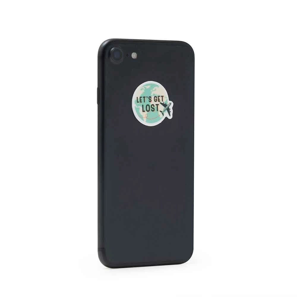 There’s a set of four travel themed stickers, each a different shape and size. On one side is the reusable adhesive and on the outer is a microfibre surface which is perfect for cleaning screens.Â