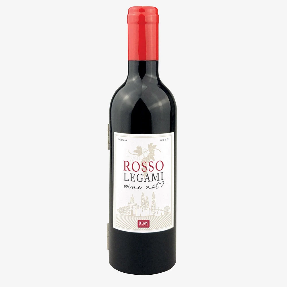 It all comes housed in a case shaped just like a mini wine bottle! With strong magnet clasps and foam to keep your tools in place and protect them.Â