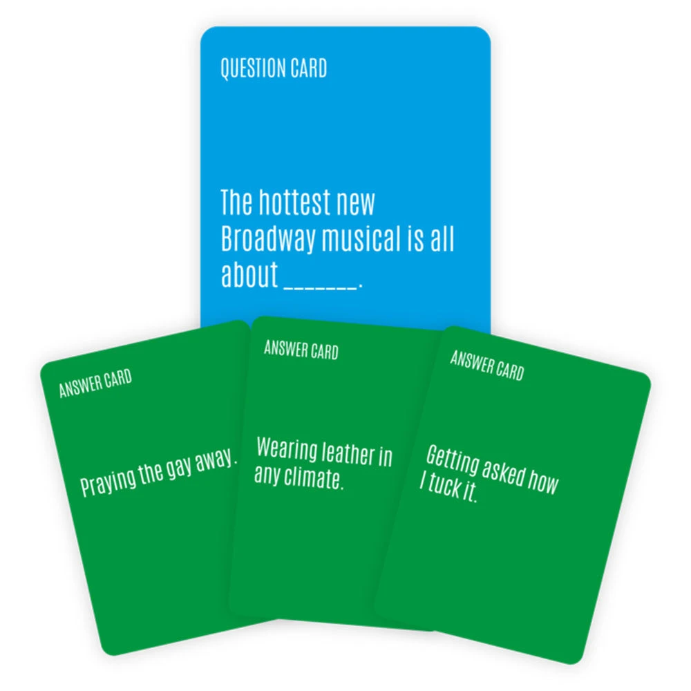 It has a whole bunch of hilarious question and answer cards written by a team of amazing LGBTQ+ comedians. And with answers like ” Praying the gay away” or “Getting asked how I tuck it”, it shows in the best possible way.
