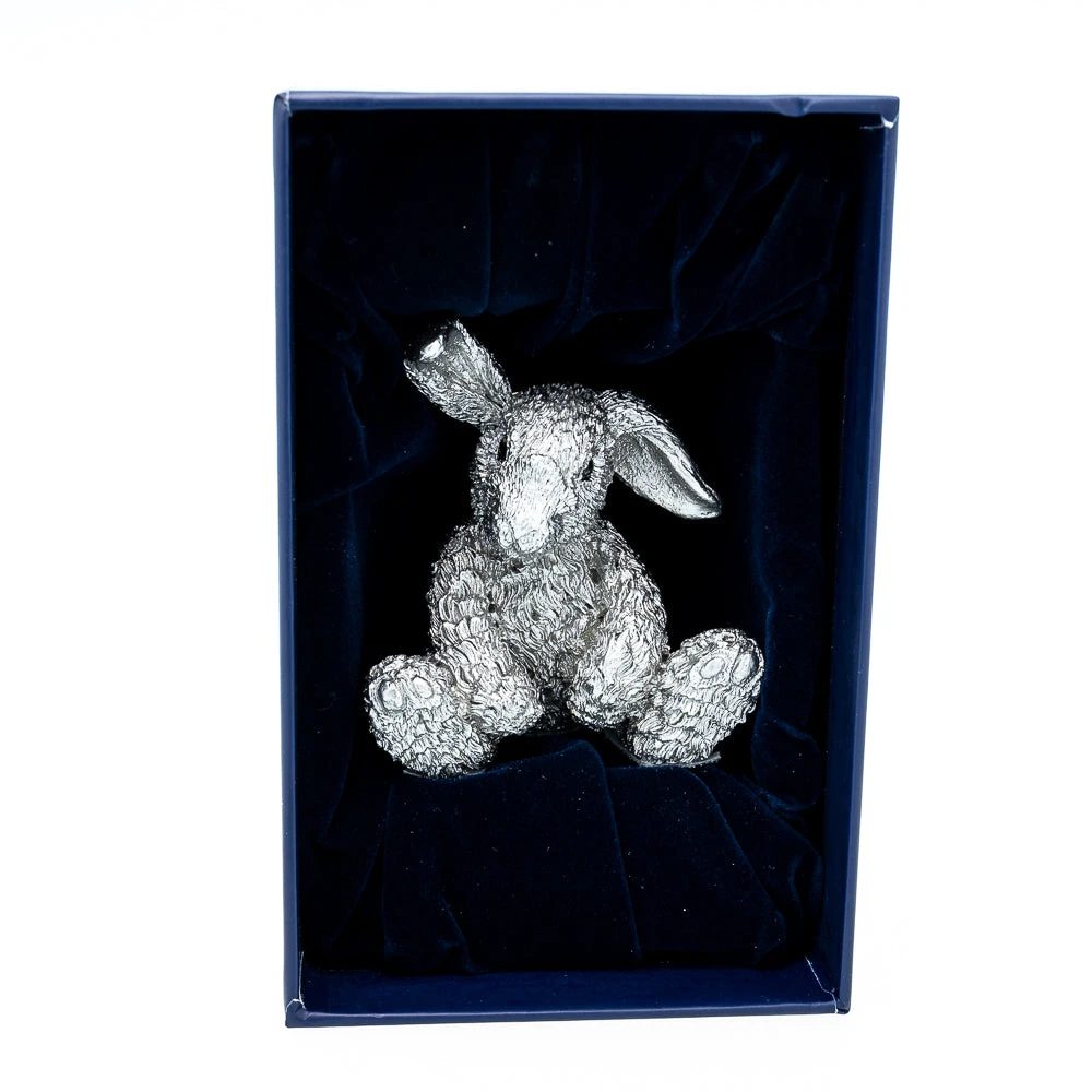 This adorable bunny rabbit is delicately sculpted from fine porcelain and coated in a shimmering pewter to make a gorgeous gift that will last a lifetime.Â