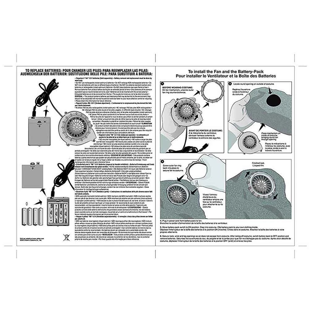 For added convenience, this costume has a rear zipper and a clear vinyl port in character neck, letting you see through with ease. Last but not least, this costume comes with a user manual and a battery pack (batteries not included).