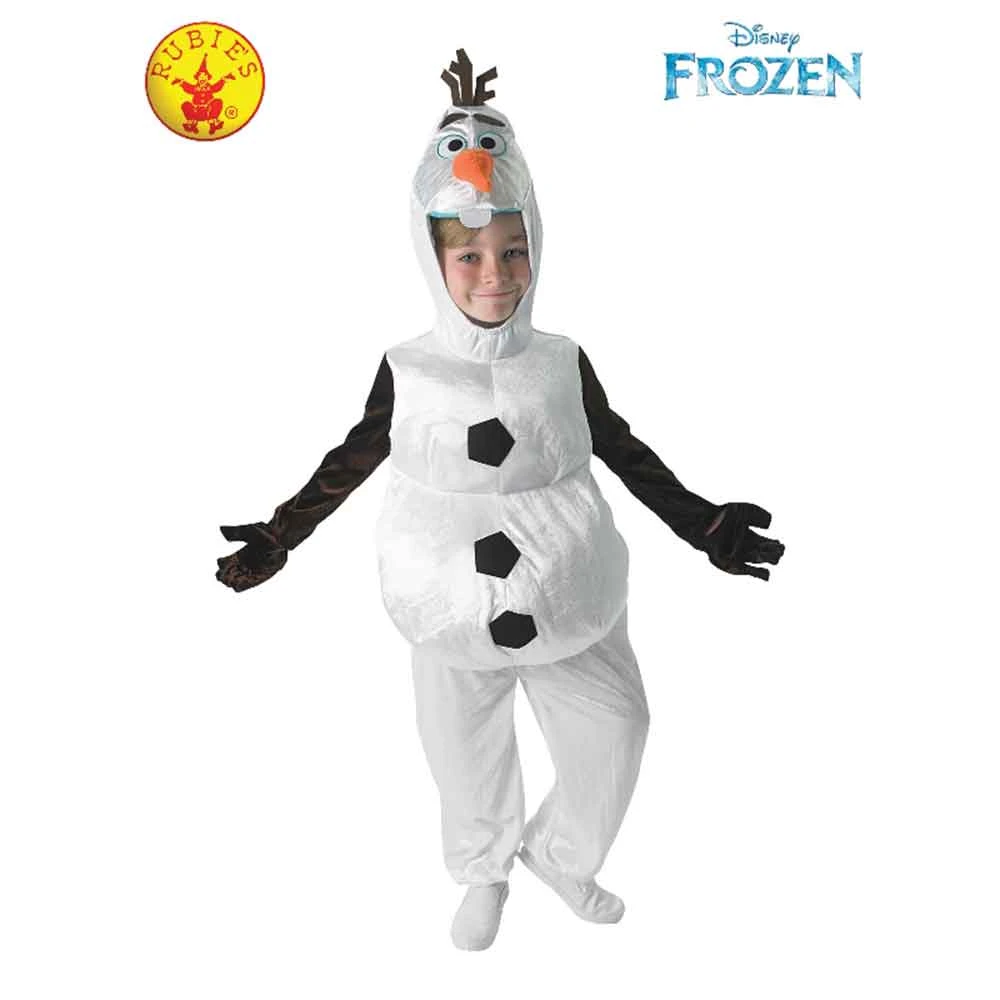 An officially licensed Disney product, you can be sure that this costume is the real deal. This velour all-in-one jumpsuit has a padded middle section, printed buttons, and sleeves with built in gloves. Padded snowman head is designed with a carrot nose and a felt tuft of hair.