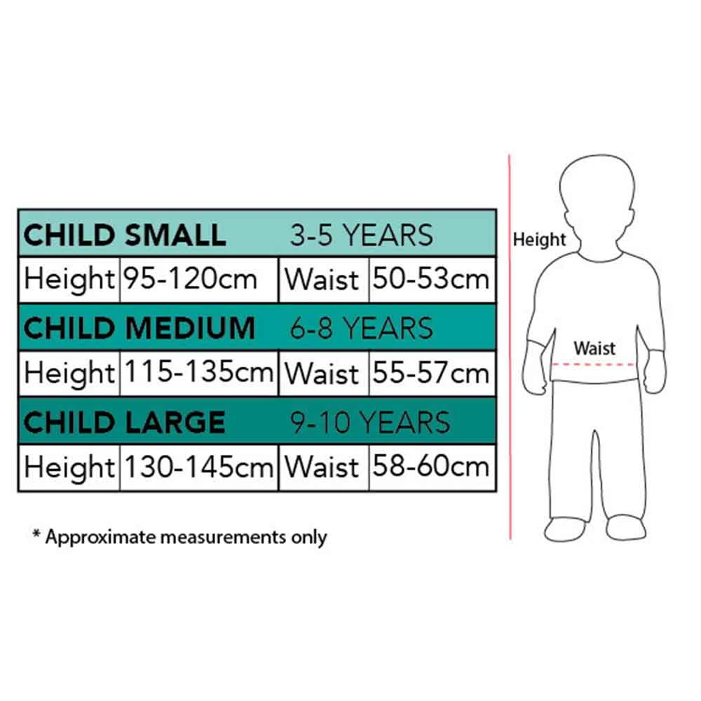 - Sizes:Â 3-5 years, 6-8 years, 9-10 years (see size chart for more information)