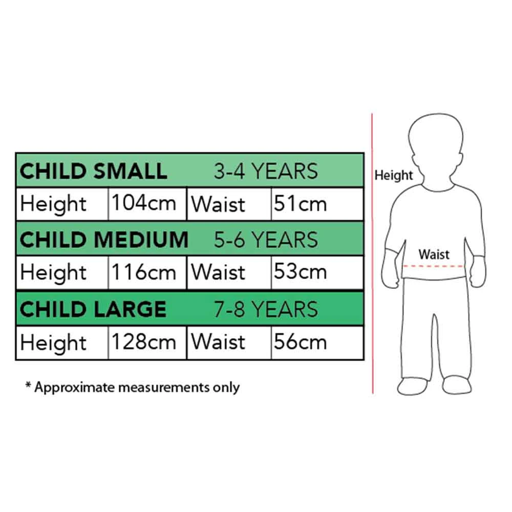- Sizes:Â 3-5 years, 6-8 years (see size chart for more information)