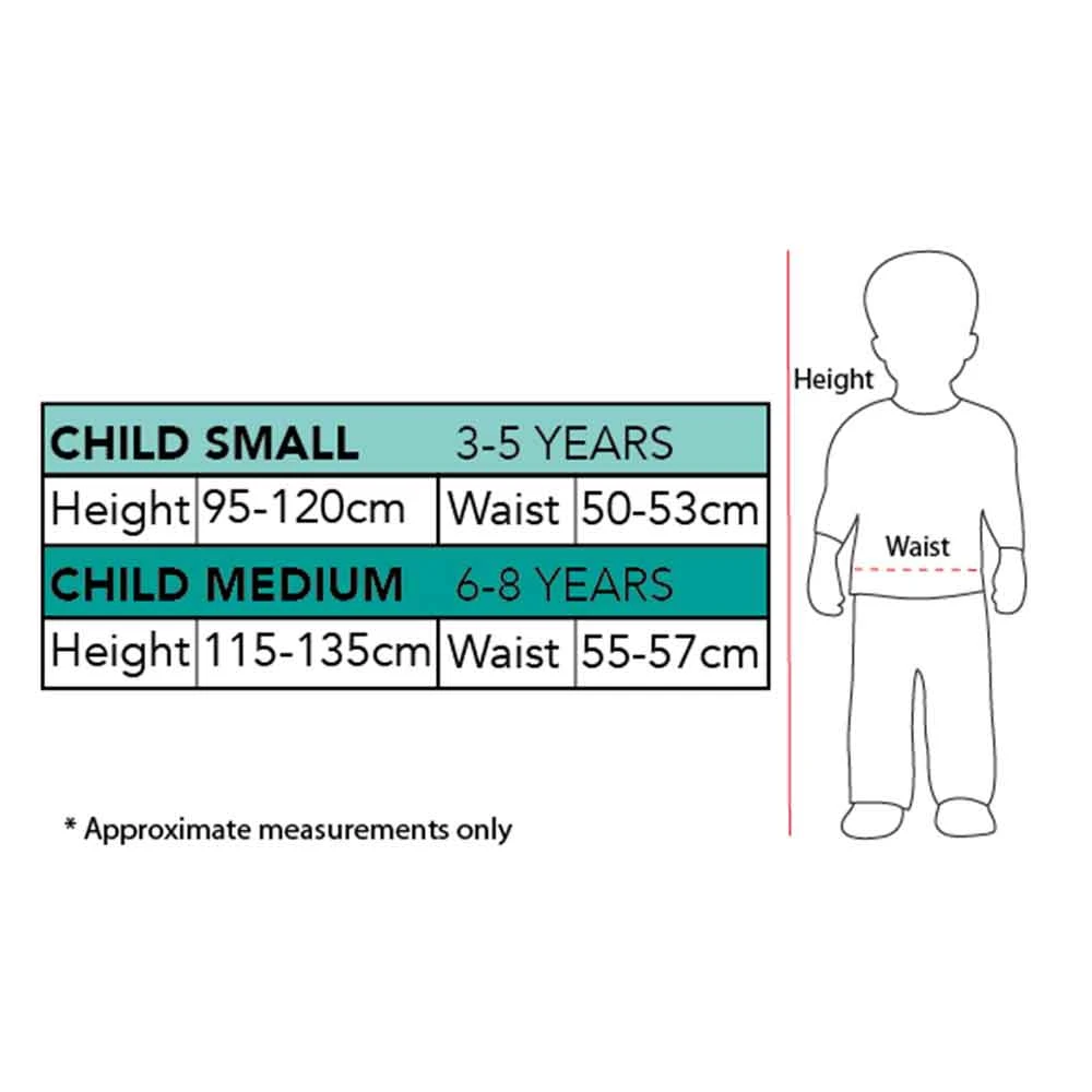 - Sizes:Â 3-5 years, 6-8 years (see size chart for more information)