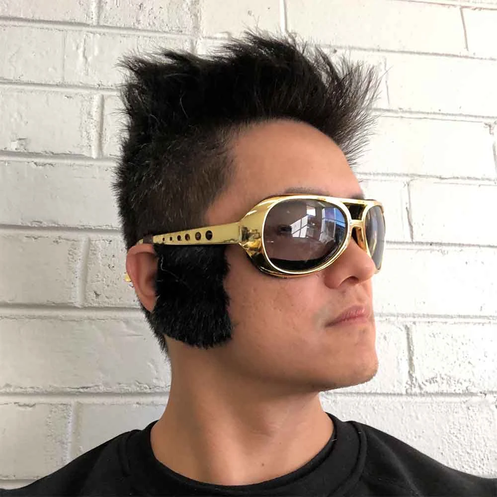 But you might as well do it in style! These are styled after the King himself, Elvis! With shiny gold frames and built-in faux fur sideburns, you’ll be swinging those hips in no time!Â