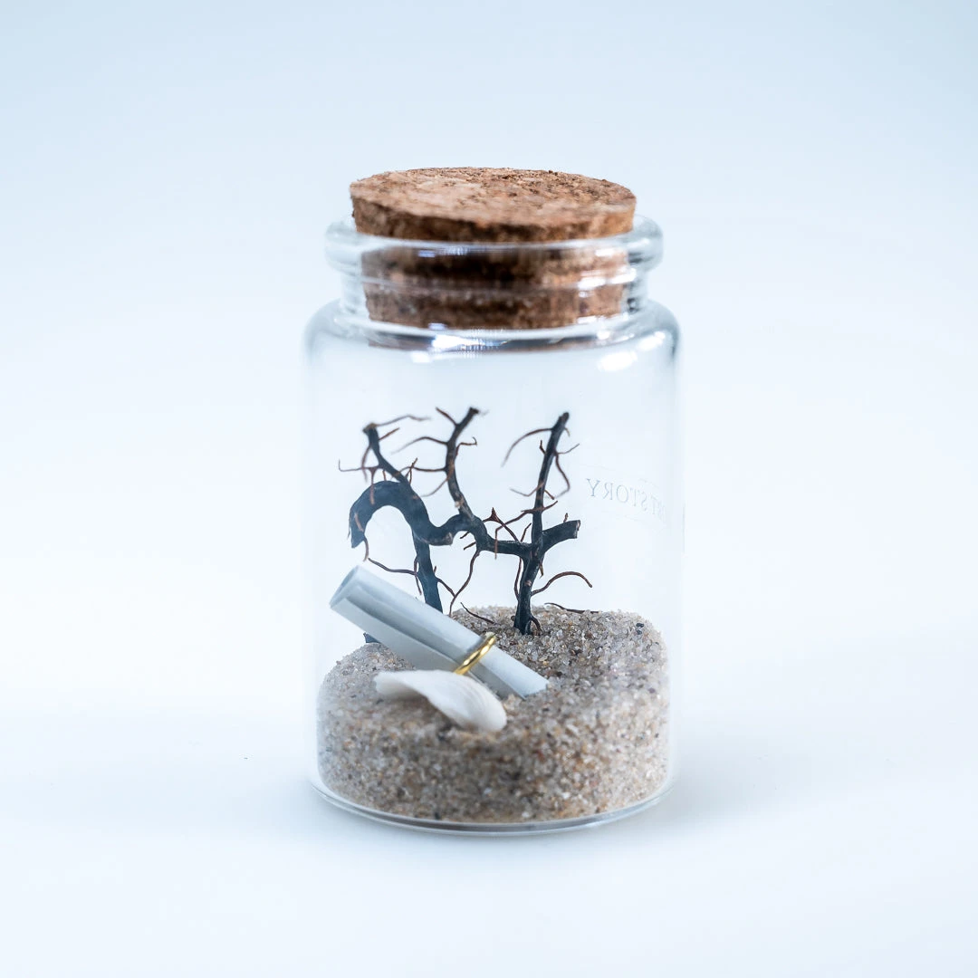 Gift a timeless expression of your affection with the Ocean Breeze Message in a Bottle, a glass receptacle filled with fine sand, shells and coral, finished with a cork stopper.