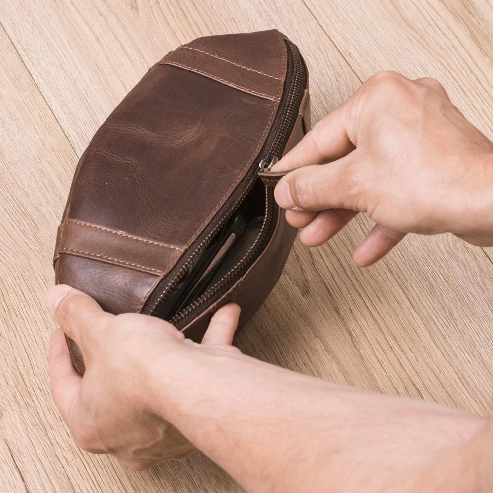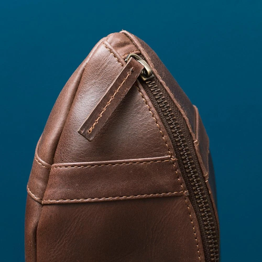This funky leather washbag will wow any football or Rugby fan with its true-to-the-real-deal football design. Carefully crafted from the finest soft leather to mimic the seams and joins of a real football, this striking toiletry accessory is sure to stand the test of time.
