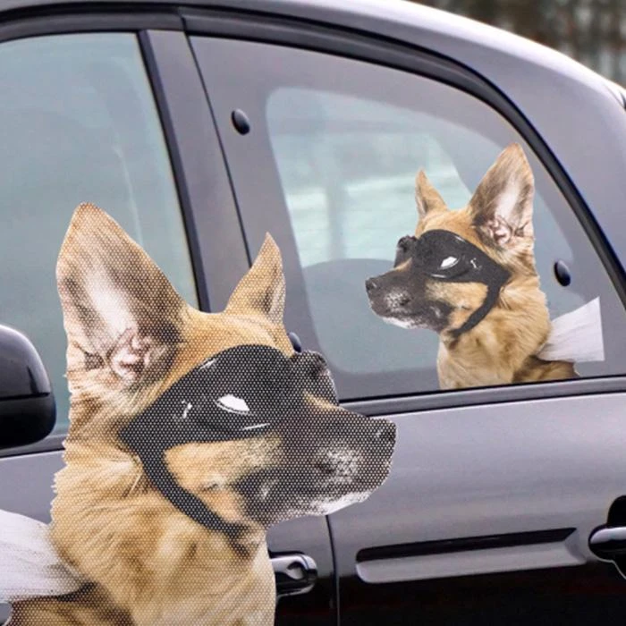 Freak out people on the street, and always have someone to talk to while you’re cruising the beat, with our ‘Ride With’ Car Window Decals, in either the horrifyingly realistic Trump style, or the adorable Dog in Goggles style.Â