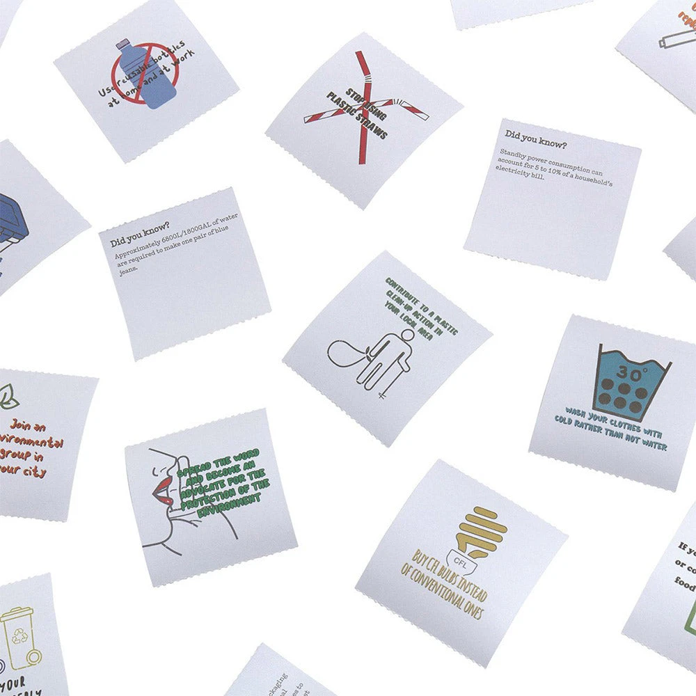 Each tab has a suggestion for keeping your emissions down and keeping the Earth happy. From ditching plastic straws to leaving the car at home, each tab also has a fact to keep you motivated.Â