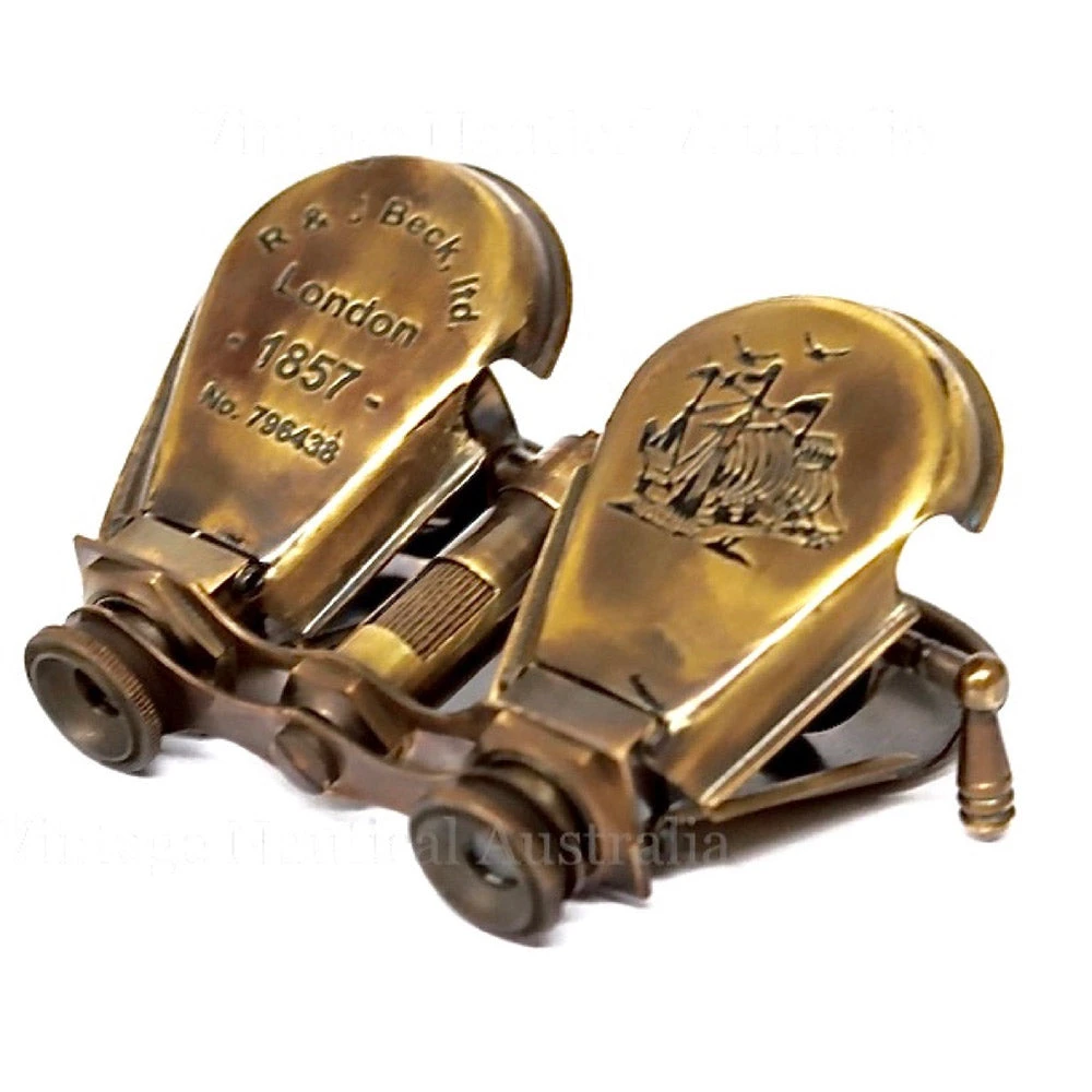 These brass binoculars are detailed with an homage to a genuine brand from London, 1857. They fold down flat to slip into the stylishly embossed leather case. With 2 – 5 x magnification, they’ll bring an authentic feeling of vintage warmth to any room.