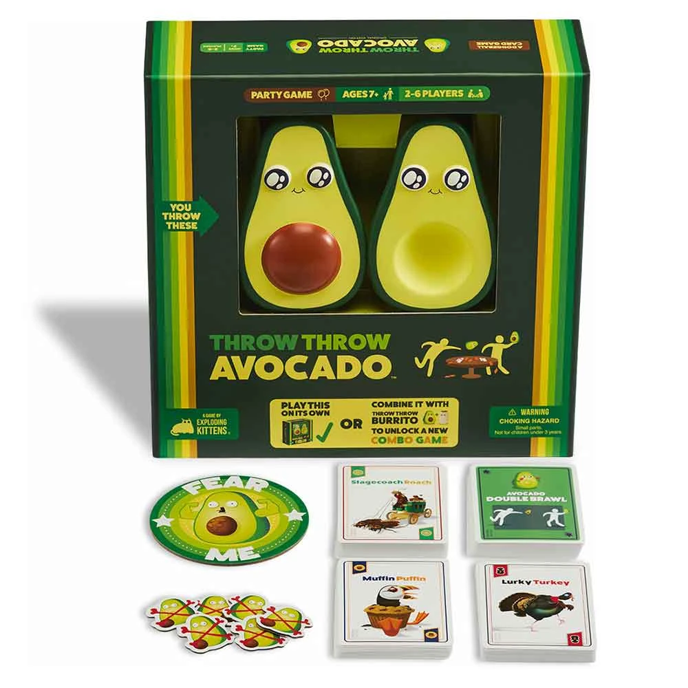 - Inclusions: 120 cards, 2 x foam avocados, 1 x fear me badge, 6 x avocado boo boos, instructions, 36 x bonus cards for pairing with Throw Throw Burrito