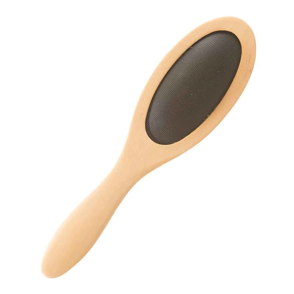 At first glance this might look like a regular paddle brush. On closer inspection, you’ll see there isn’t any bristles! This brush has a wooden handle with a rubbery pad, perfect for polishing up your noggin to get the gleam!