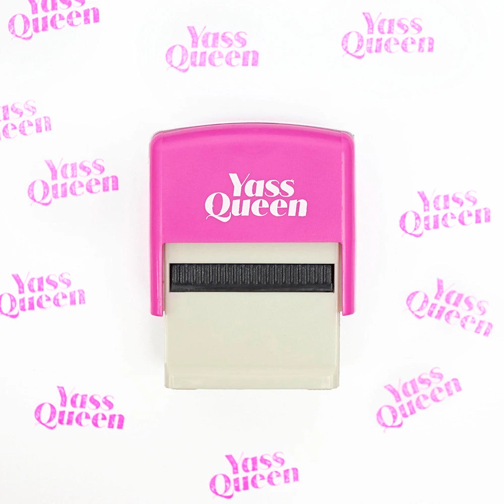 Any office memo for your work bestie or graded student work will feel ten times more special when they’re stamped with an encouraging “YASS QUEEN!”. The hot pink self-inking stamp has matching pink ink.