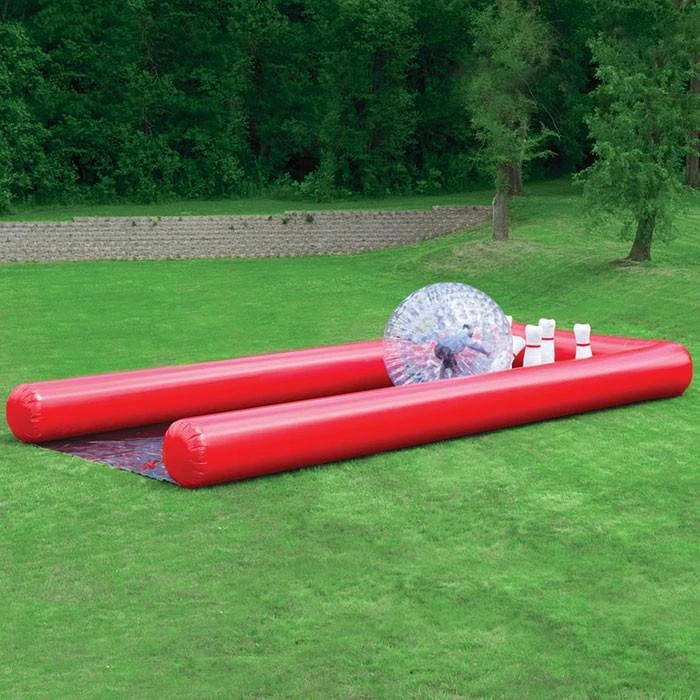 This is an inflatable bowling game that challenges players to be the ball, and succeed in knocking down a set of pins.