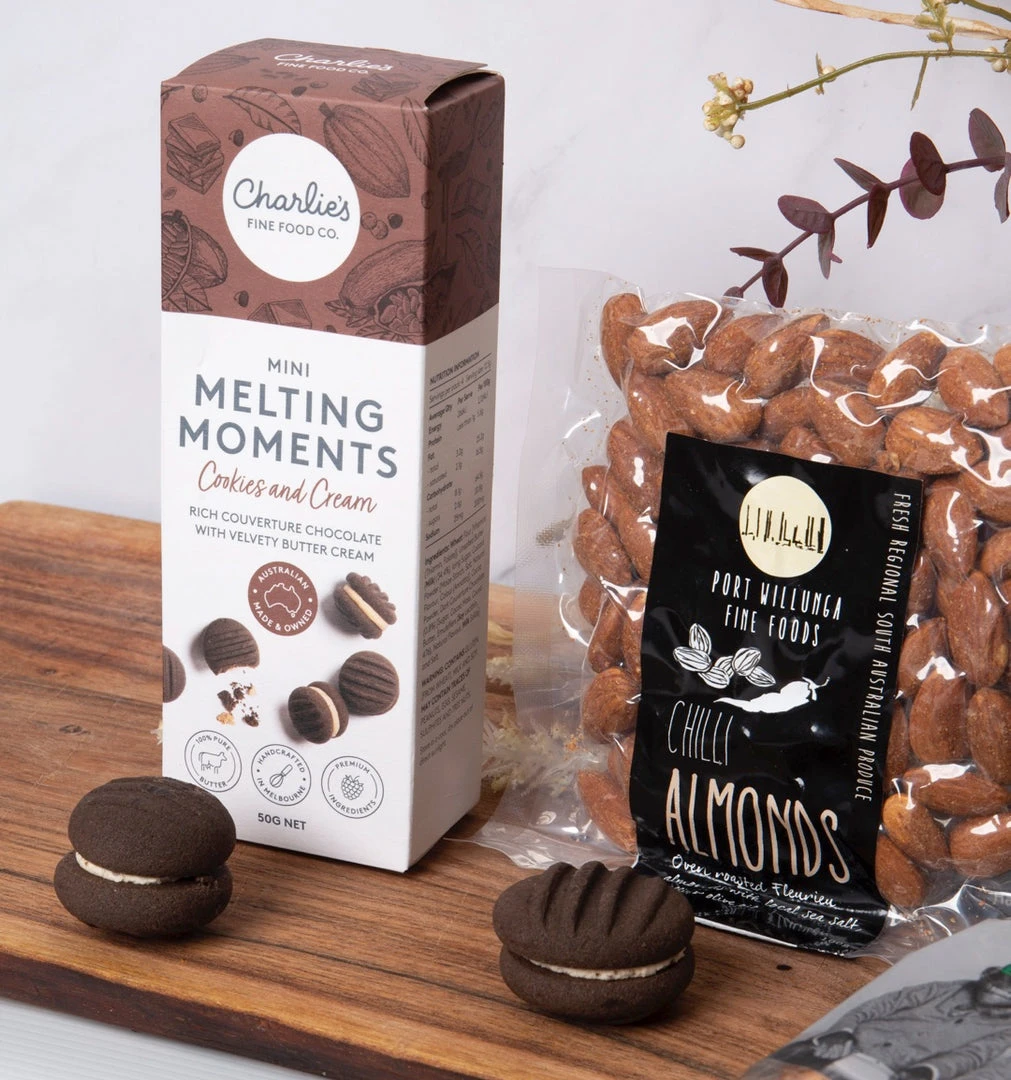 50g Charlies Mini Melting Moments (Vanilla Bean, Cookies & Cream, or Raspberry Bliss selected randomly),