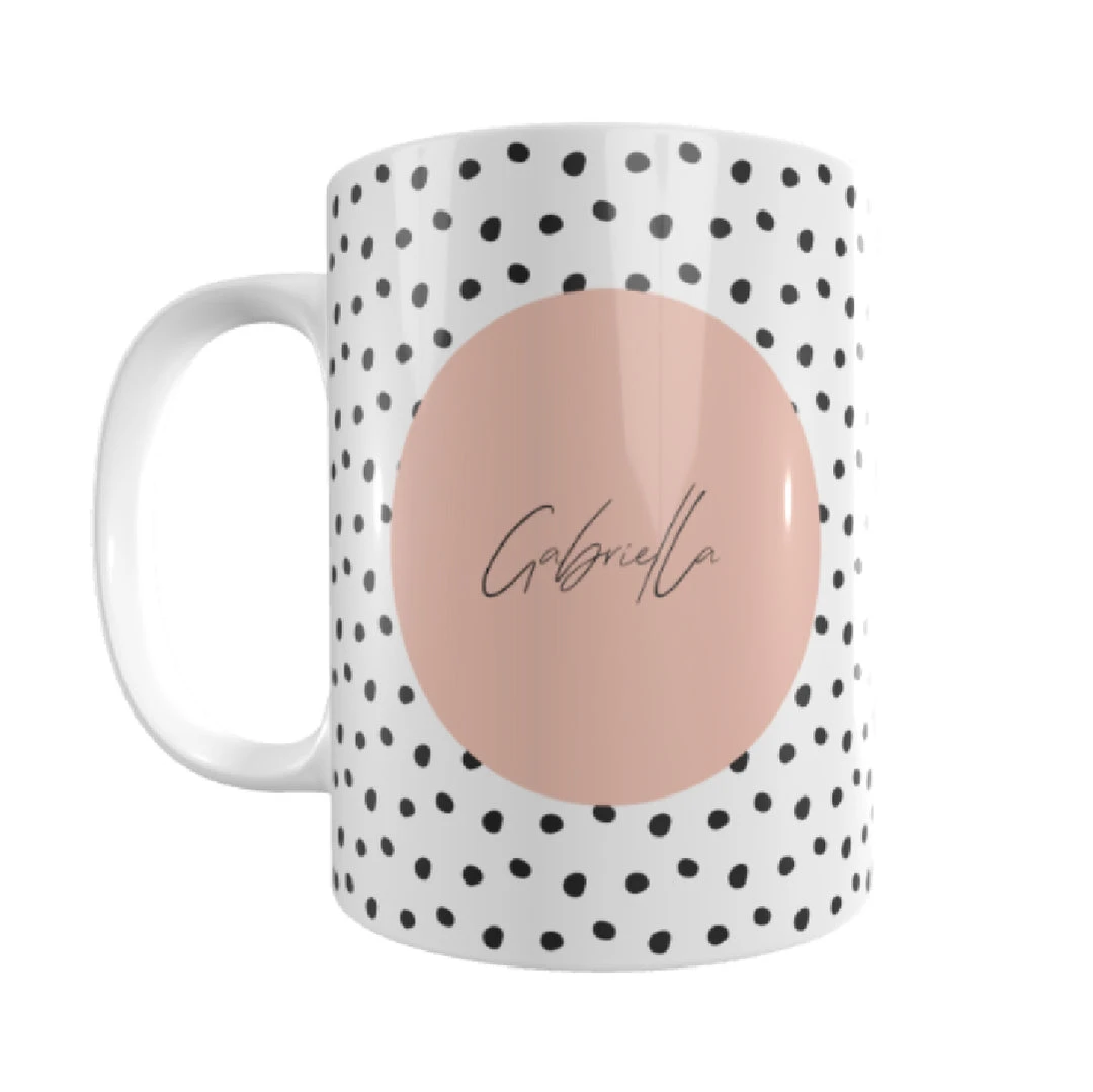 PERSONALISED MUG –Â DOTS AND CIRCLE DESIGN WITH NAME
